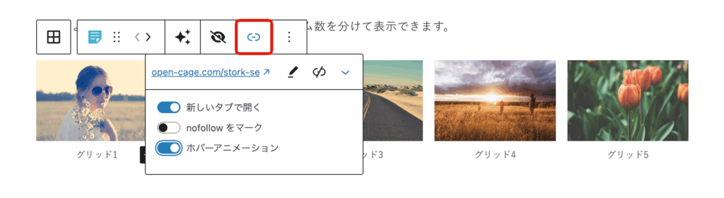グリッドパーツのオプションからリンクを挿入することができます。(グリッドごとにリンクを設定できます)